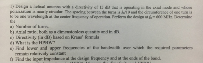 Solved: Design A Helical Antenna With A Directivity Of 15 ... | Chegg.com